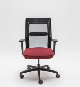 Fotel obrotowy TANYA wyposażony w mechanizm auto synchro umożliwia odchylenie oparcia do 20 stopni oraz jego blokadę w 5 pozycjach. Oparcie wykonane jest z elastycznej, czarnej siatki STRING, która podlega 100% recyklingowi.