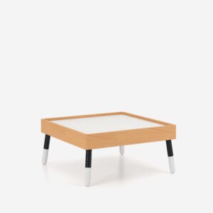 Stolik wolnostojący dostępny jest z blatem wykonanym z płyty wiórowej, pokrytej obustronnie laminatem HPL.