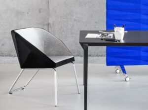 Fotele TIMANTI są tapicerowane tkaniną z wełny naturalnej, która jest surowcem biodegradowalnym i odnawialnym w cyklu rocznym. Podstawę konstrukcji stanowi aluminium, pochodzące z recyklingu i gotowe do ponownego przetworzenia.