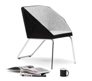 Fotel charakteryzuje się niezwykłą estetyką i komfortem użytkowania. Mocny punkt projektu to geometrycznie tapicerowane siedzisko i oparcie.