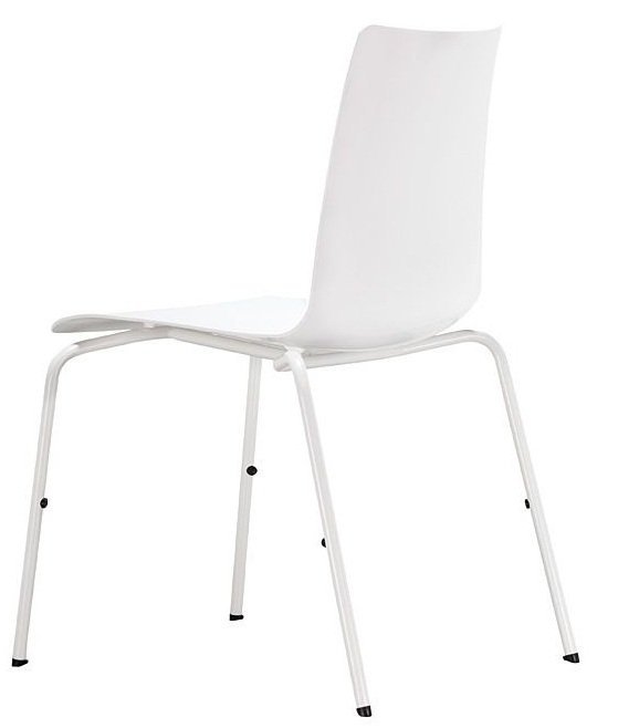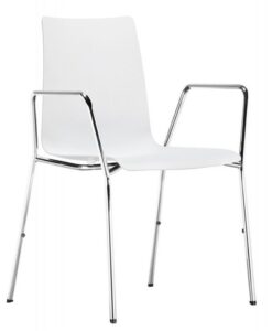 Krzesło konferencyjne bez podłokietników. Oparcie z siedziskiem z profilowanego tworzywa w kolorze białym, czarnym lub srebrnym. Stelaż z rurki stalowej malowany proszkowo lub chromowany. Ślizgi do wykładzin dywanowych, w opcji do podłóg twardych. Możliwość sztaplowania krzeseł na stelażu 4-nożnym do 6 sztuk.