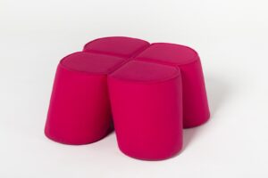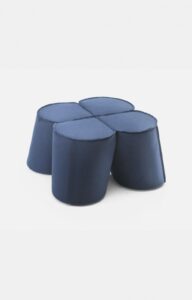 W skład rodziny wchodzą trzy rodzaje siedzisk o różnych rozmiarach: pufa, stołek oraz hoker, a stołek może pełnić funkcję stolika dzięki zdejmowanemu blatowi. Dostępne warianty wykończenia szwów pozwalają spersonalizować mebel, dopasowując go do nowoczesnych biur, przestrzeni publicznych czy wnętrz domowych.