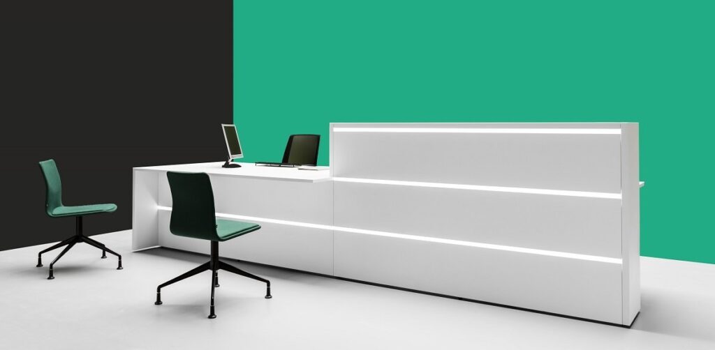 Różnorodność materiałów, bogactwo kolorów oraz faktur i nowoczesne wzornictwo – to podstawowe cechy systemu lad recepcyjnych TRESTA.