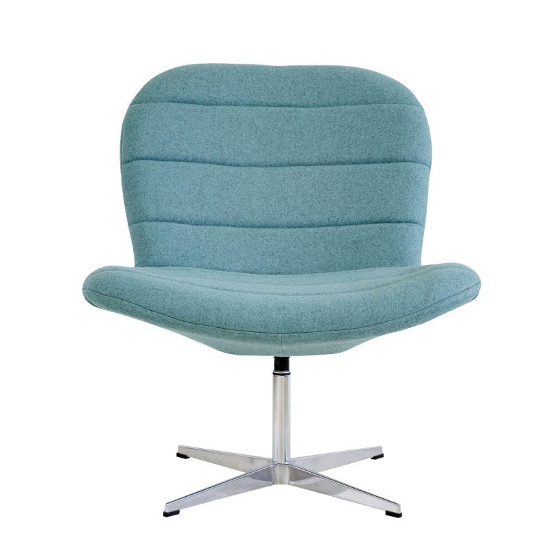 Fotel jednoosobowy obrotowy na podstawie czteroramiennej z aluminium polerowanego. Kolumna obrotowa chromowana. Kubełek siedziskowy poprzeszywany poziomo na oparciu oraz siedzisku.