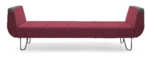Sofa tapicerowana tkaniną lub skórą z ozdobnymi guzikami. Możliwość tapicerowania siedziska i oparcia w różnych kolorach w ramach tej samej kolekcji tkanin.