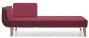 Tapicerowana tkaniną lub skórą z ozdobnymi guzikami, możliwość personalizacji siedziska i oparcia w różnych kolorach w ramach tej samej kolekcji.