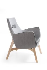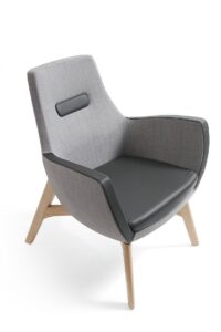 Zapewnia on użytkownikowi odrobinę prywatności, wyciszenia i doskonałego komfortu. UMM WOOD 702 wyposażony jest w zagłówek z możliwością regulacji jego położenia, a także w praktyczny i wygodny podnóżek. Fotel może być tapicerowany w tkaninach blazer, crisp, remix i skórze lub w mixie: skóra+blazer, skóra+crisp, skóra+remix.