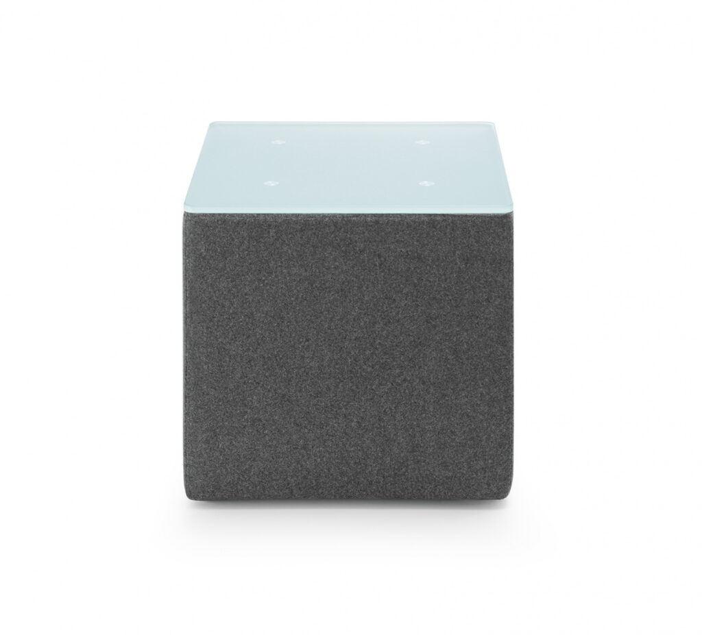 Jego kompaktowe wymiary (410 × 410 × 400 mm) sprawiają, że idealnie pasuje do mniejszych przestrzeni, takich jak recepcje czy poczekalnie. Blat wykonany z 10 mm hartowanego szkła w mlecznym kolorze zapewnia estetyczny wygląd oraz łatwość w utrzymaniu czystości.