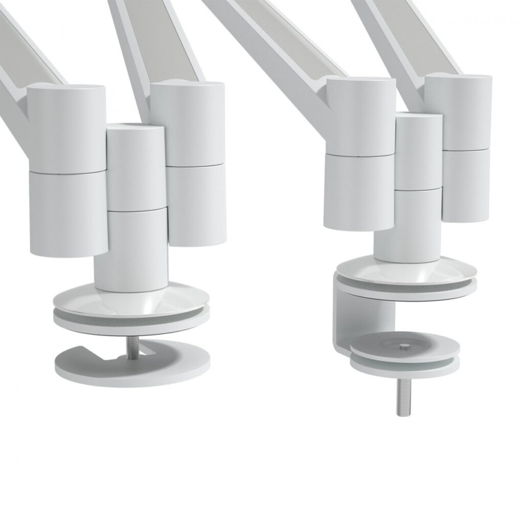 Uchwyt VIEWLITE PLUS umożliwia montaż dwóch monitorów lub urządzeń, które można niezależnie regulować na głębokość i dynamicznie na wysokość. Ułatwia to wyrównanie różnych urządzeń wyświetlających i pozwala każdemu użytkownikowi znaleźć własną optymalną ergonomiczną pozycję.
