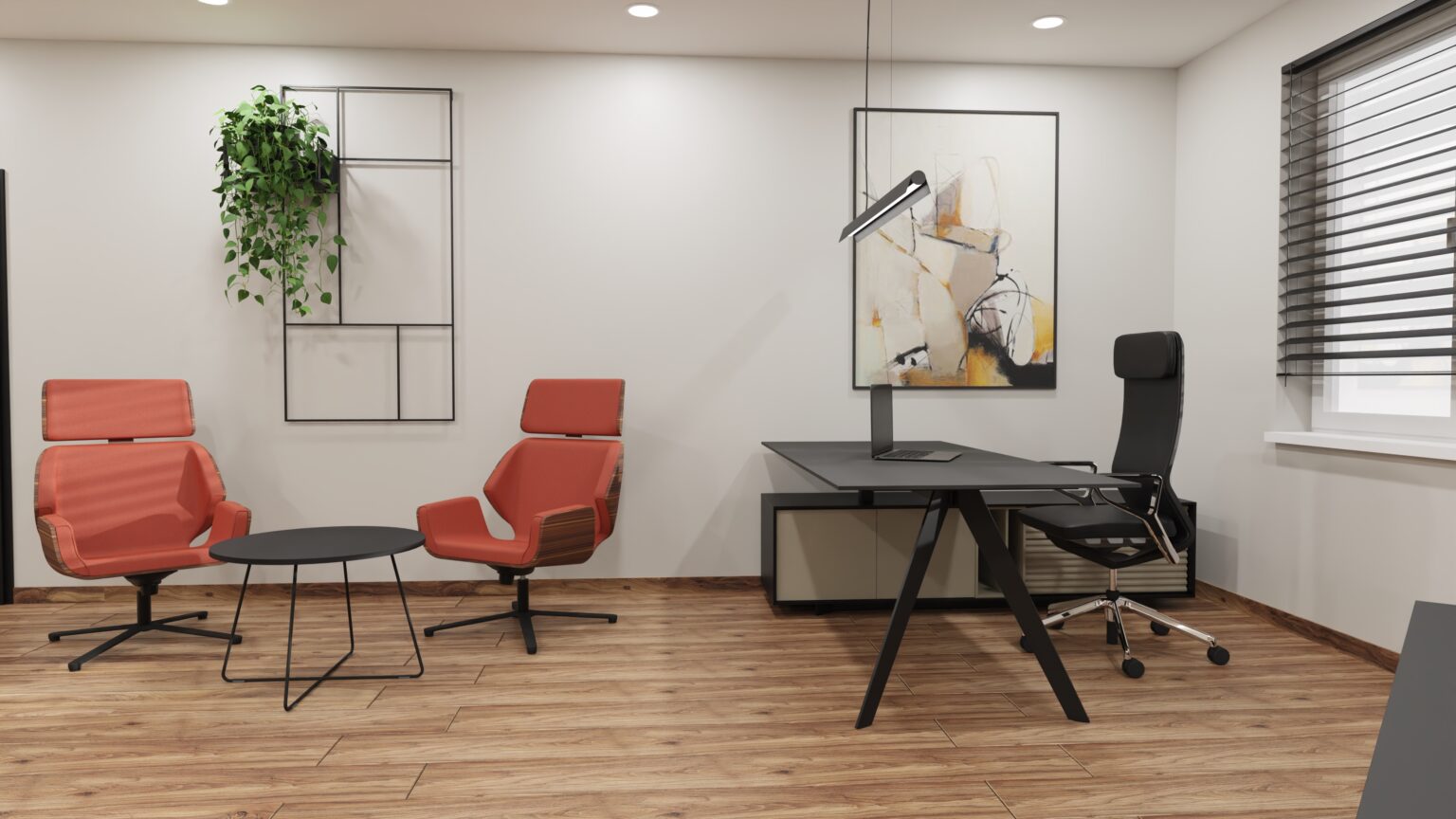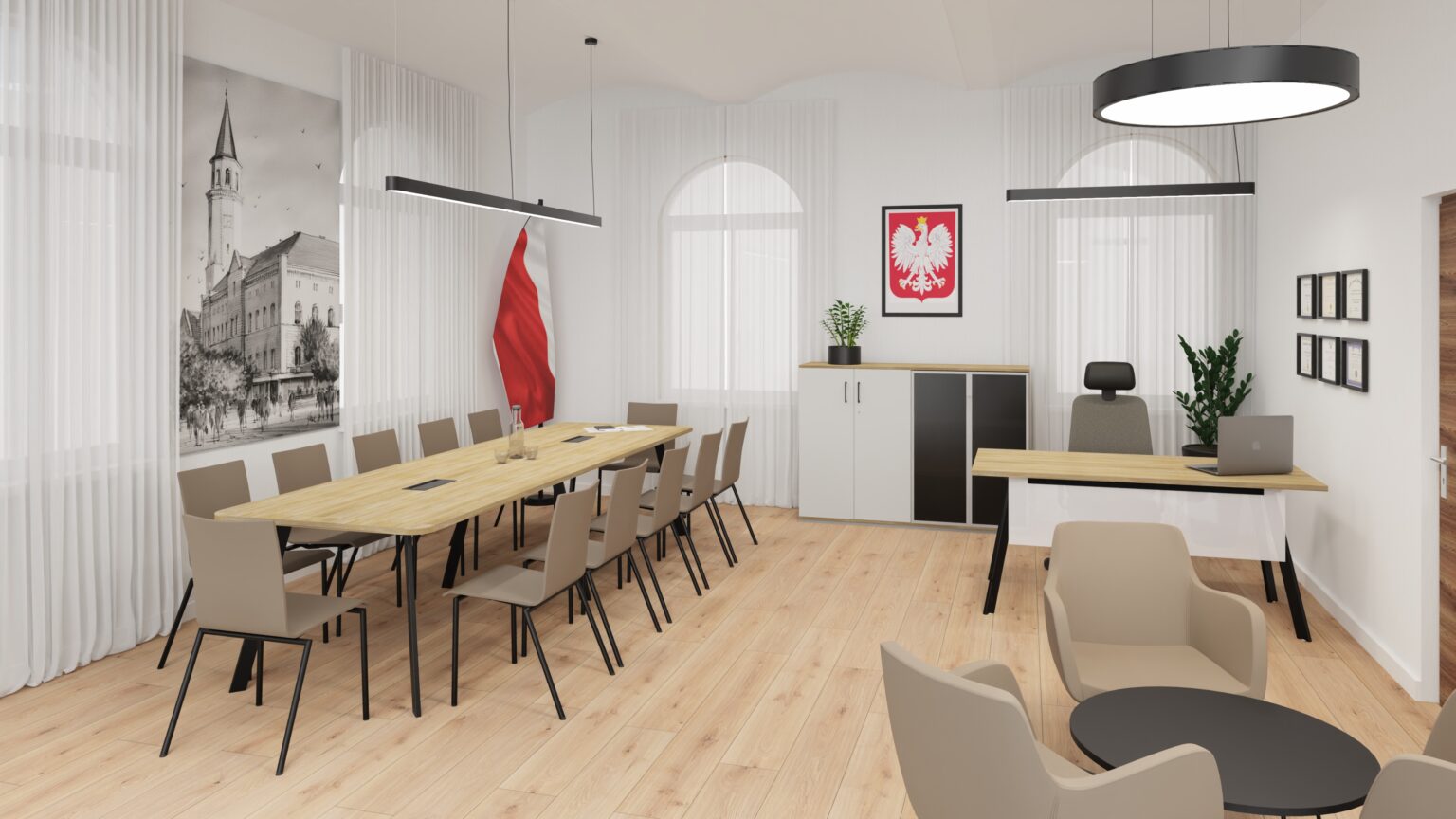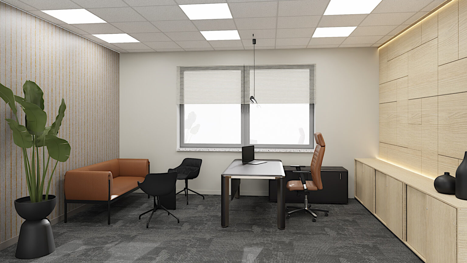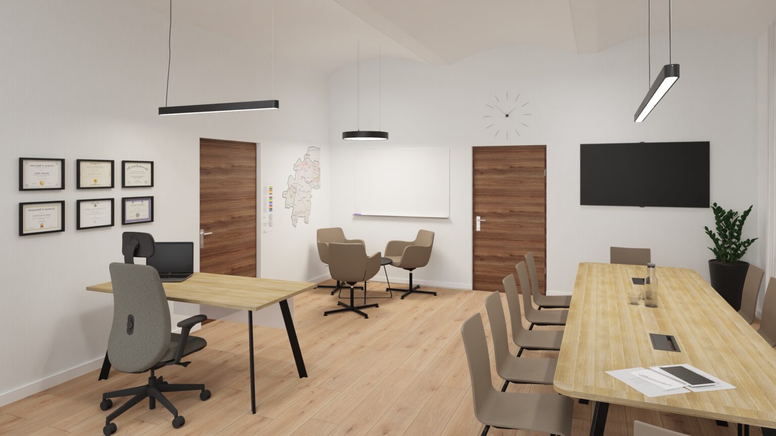 Gabinet dyrektora to wizytówka firmy. Dbamy o elegancki wystrój, dopasowaną kolorystykę i detale, które budują profesjonalny obraz i zaufanie w oczach klientów i partnerów.