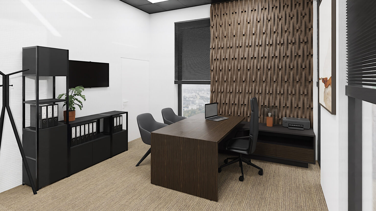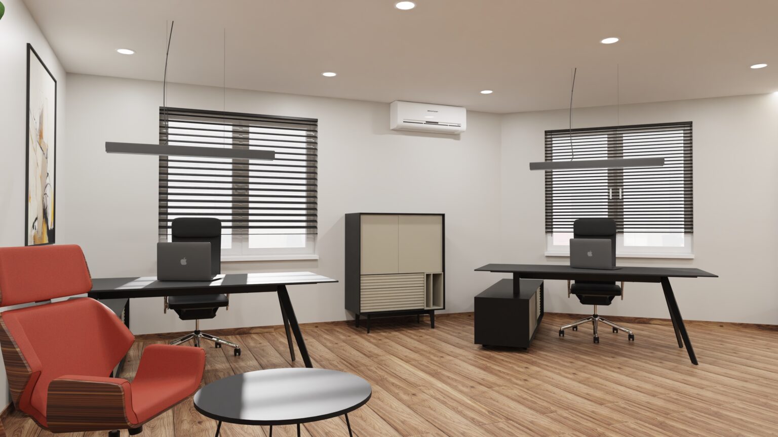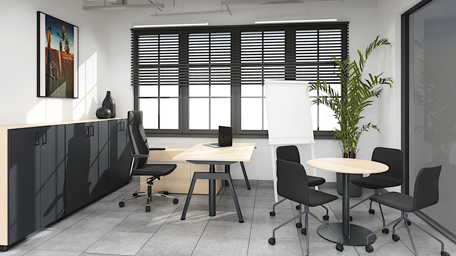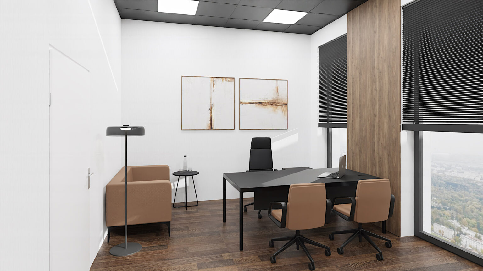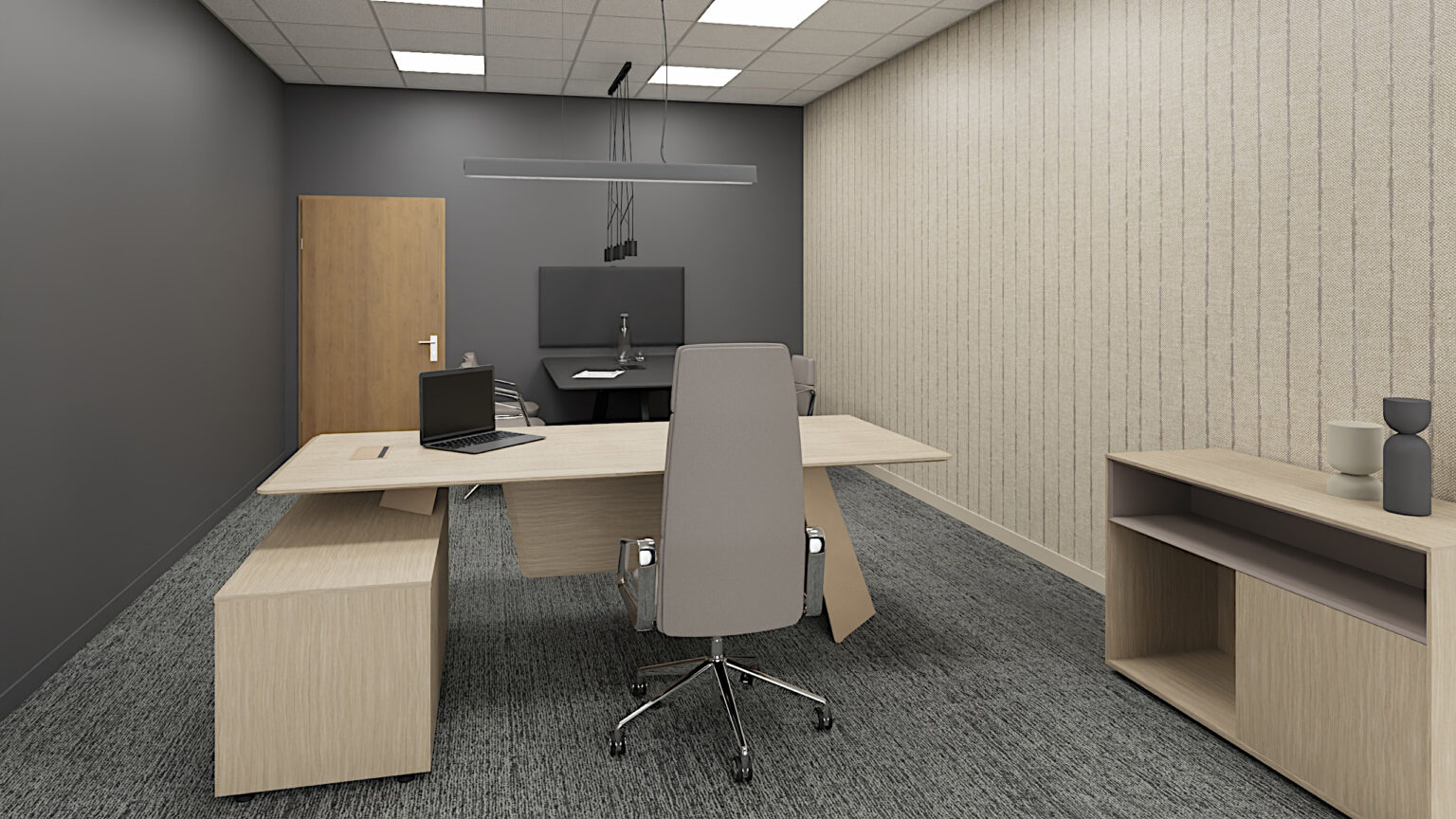 Gabinet dyrektora to wizytówka firmy. Dbamy o elegancki wystrój, dopasowaną kolorystykę i detale, które budują profesjonalny obraz i zaufanie w oczach klientów i partnerów.