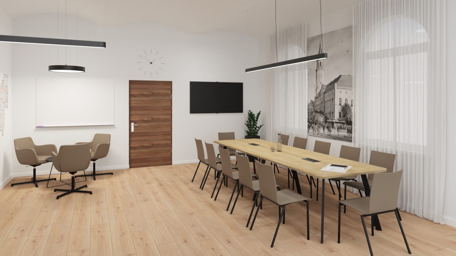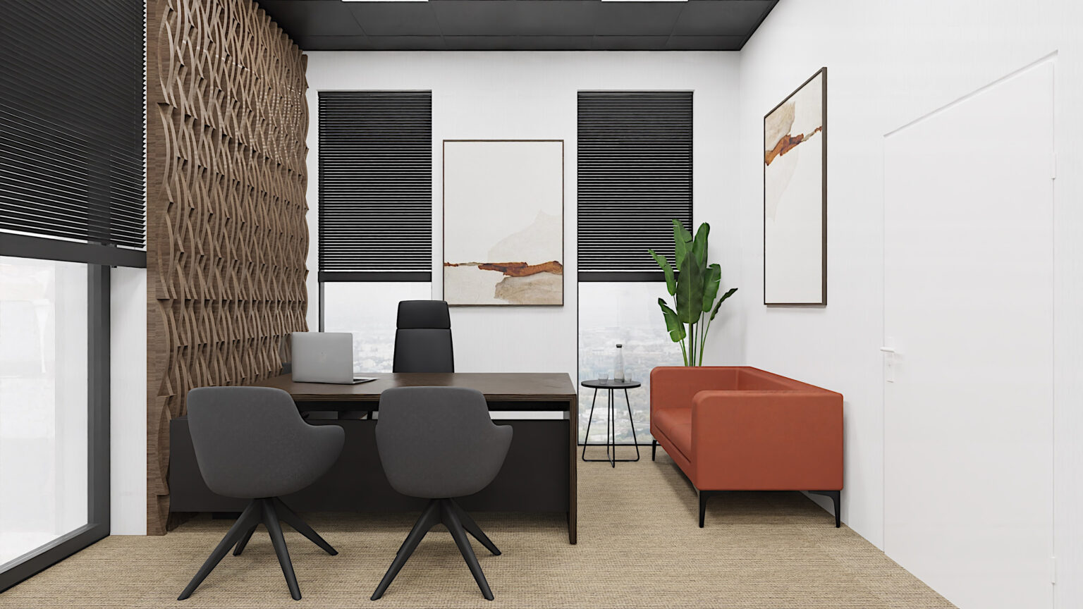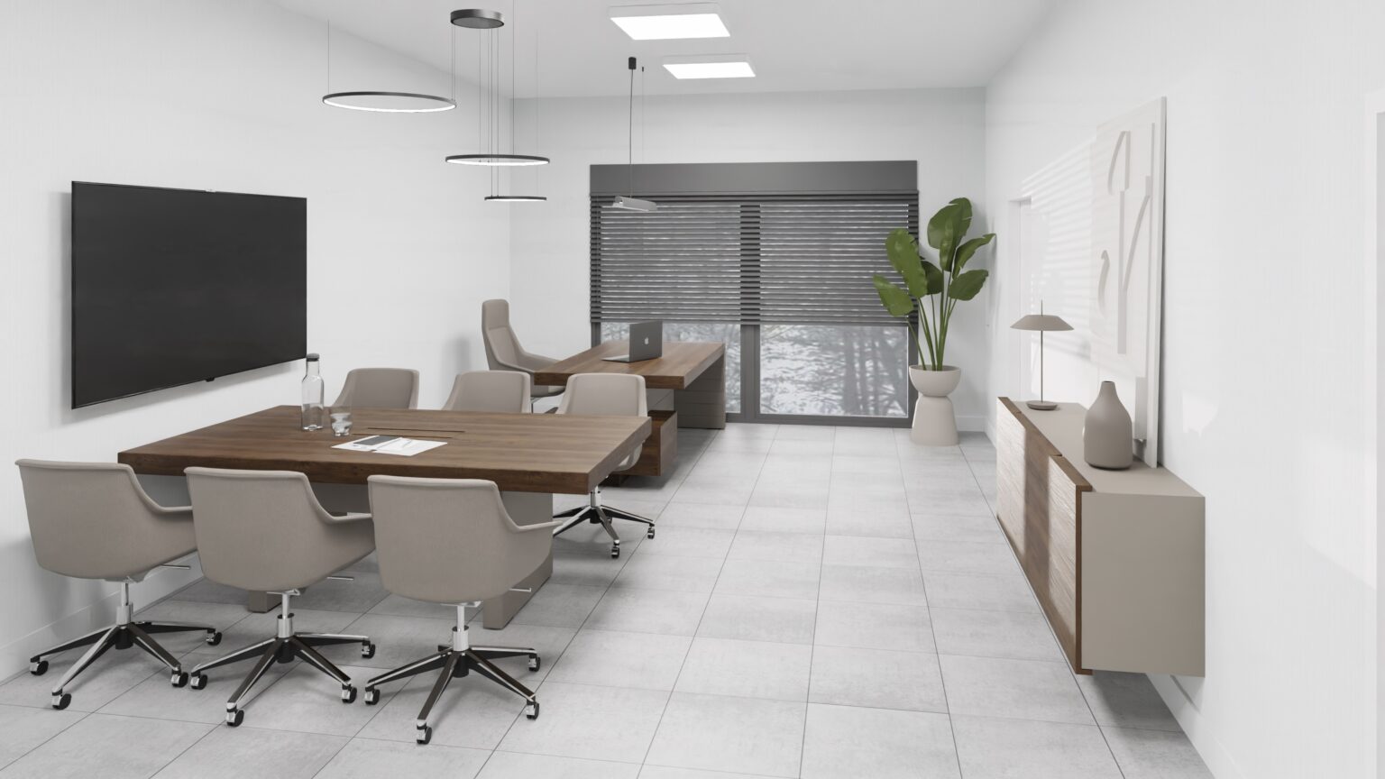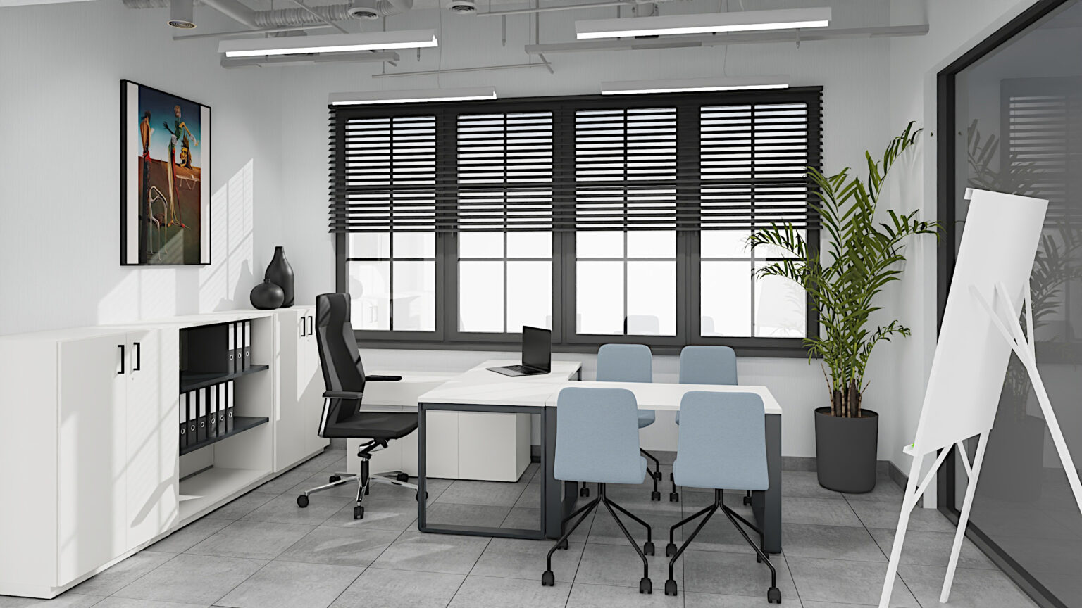 Gabinet dyrektora to wizytówka firmy. Dbamy o elegancki wystrój, dopasowaną kolorystykę i detale, które budują profesjonalny obraz i zaufanie w oczach klientów i partnerów.
