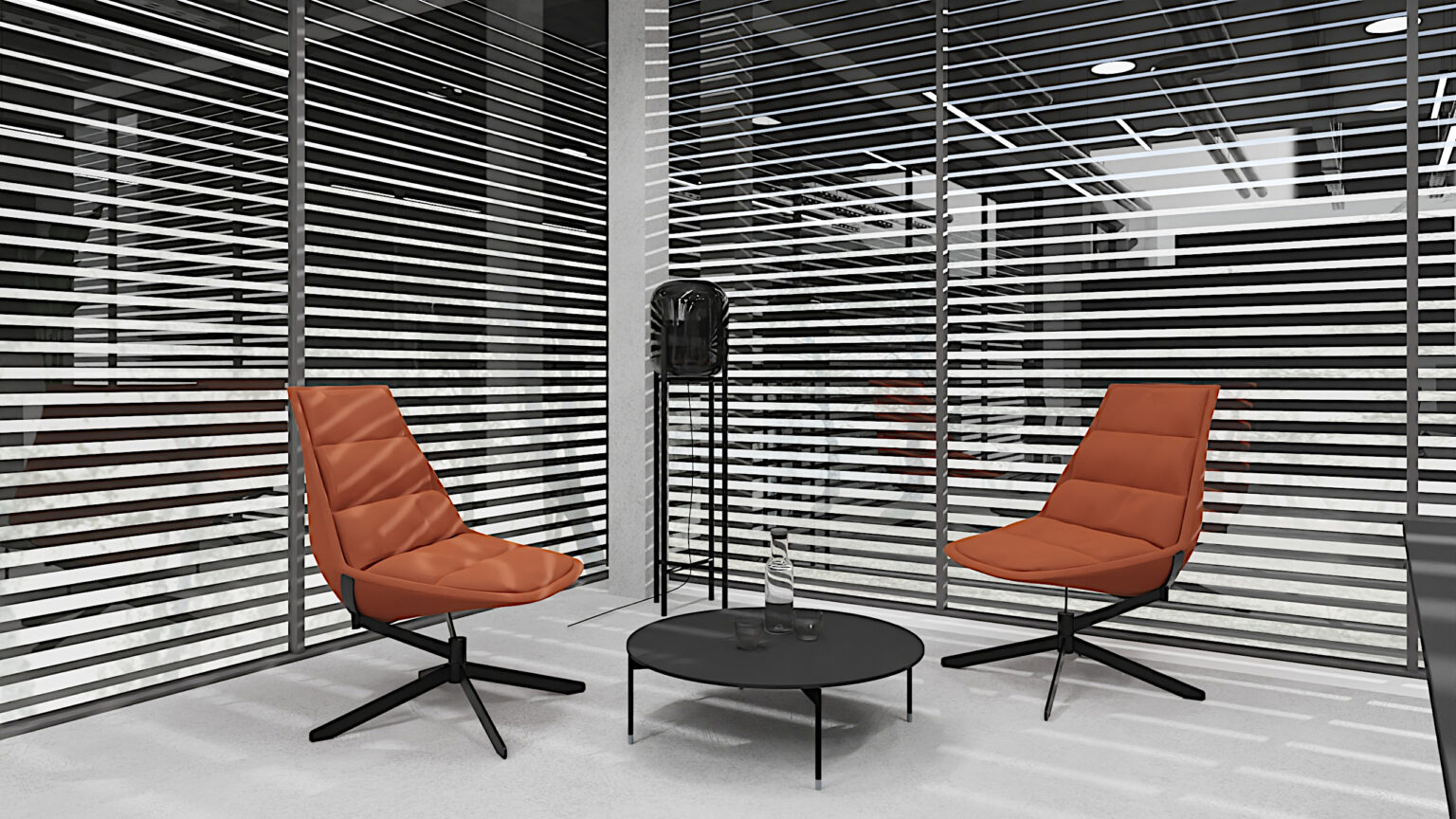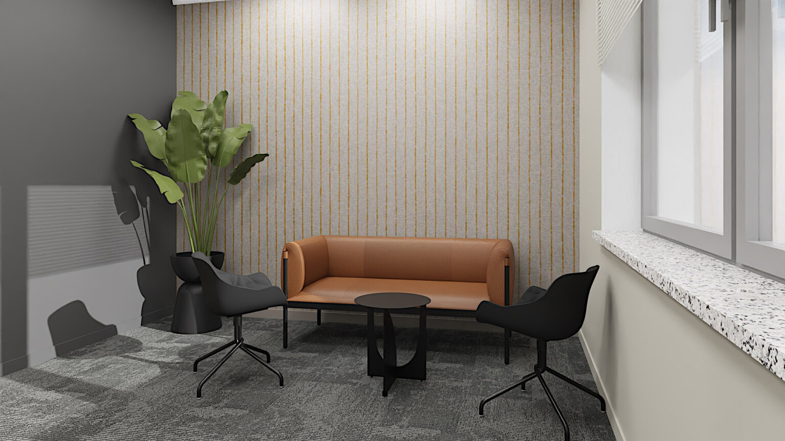 Projektujemy gabinety z wyraźnym podziałem na strefę pracy, spotkań i odpoczynku. Dzięki temu przestrzeń sprzyja skupieniu, a jednocześnie jest gotowa na przyjęcie gości i chwilę wytchnienia.