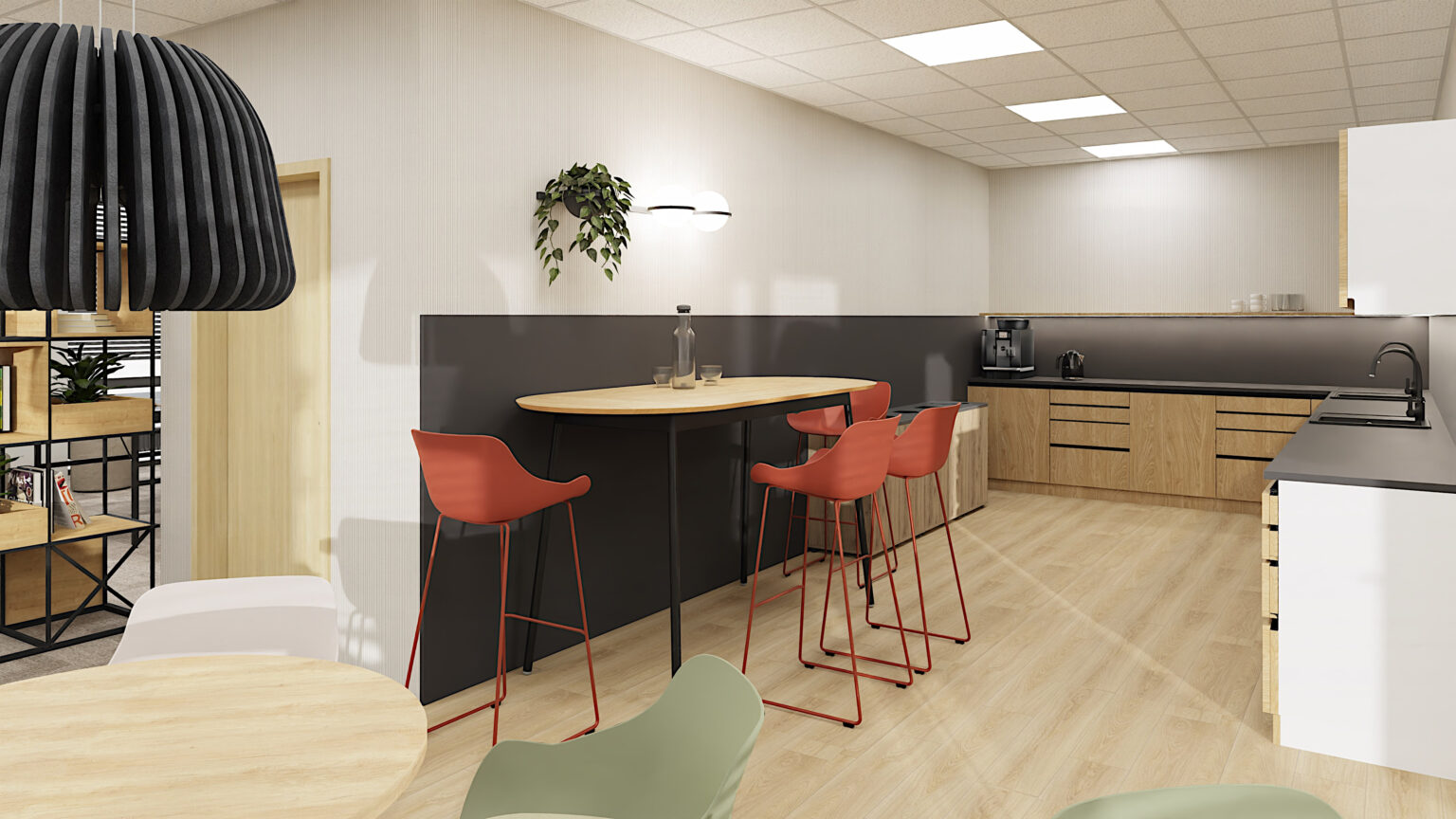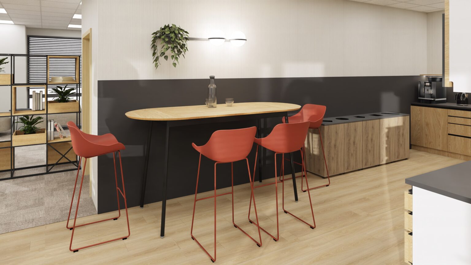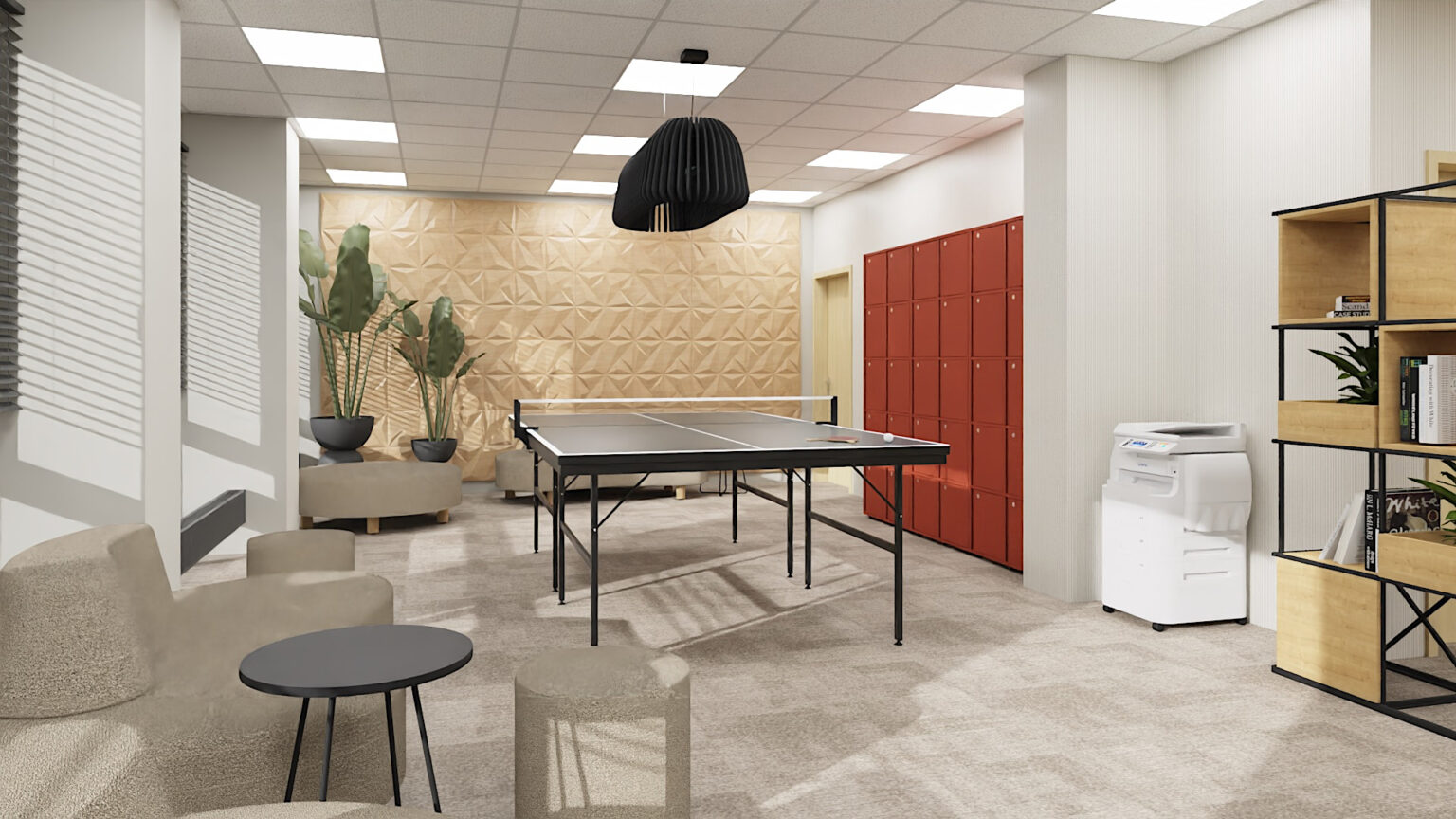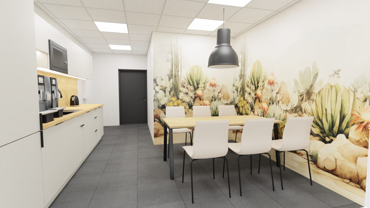Kantyna powinna odpowiadać na różnorodne potrzeby — mikrofale, ekspresy do kawy, lodówki, stacje z wodą pitną, zmywarki czy bufet samoobsługowy. Projektujemy ją tak, by korzystanie z urządzeń i obsługa była szybka i intuicyjna, a przestrzeń łatwa w utrzymaniu czystości.