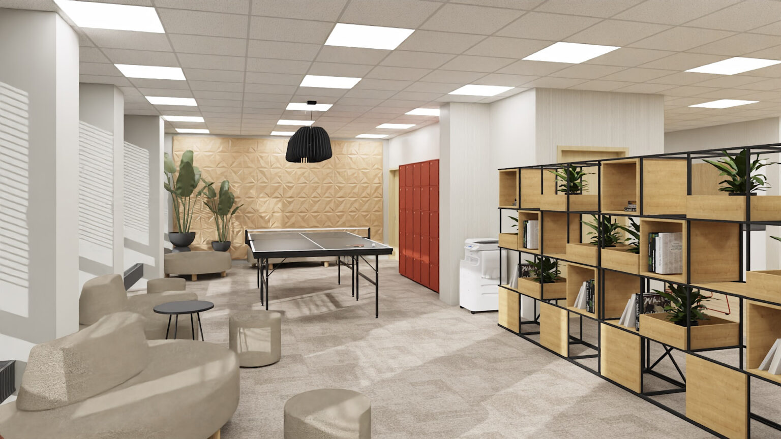 Kantyna to więcej niż miejsce na lunch — to przestrzeń, w której pracownicy mogą odpocząć, porozmawiać i odzyskać energię. Projektujemy wnętrza, w których pracownicy naprawdę chcą spędzać przerwy. Przestronne, dobrze oświetlone i funkcjonalnie wyposażone. Nowoczesne lub klasyczne, z przytulnym klimatem, który pozwala poczuć się jak w domu, nawet w środku biura.