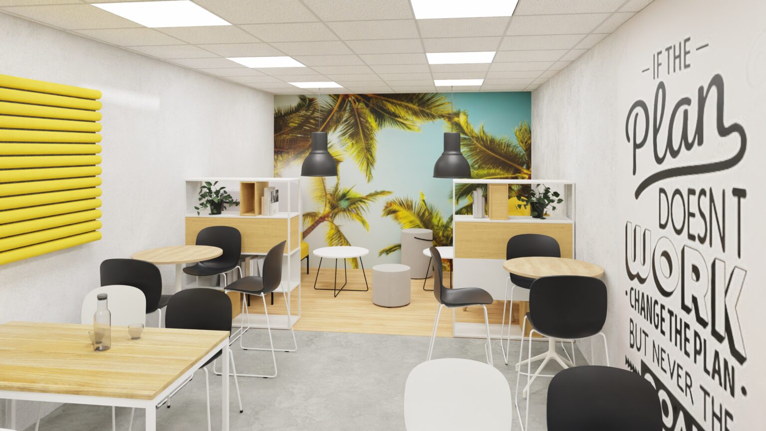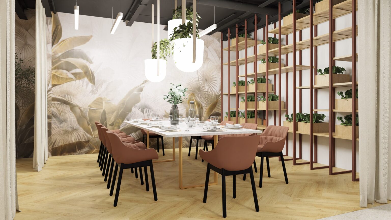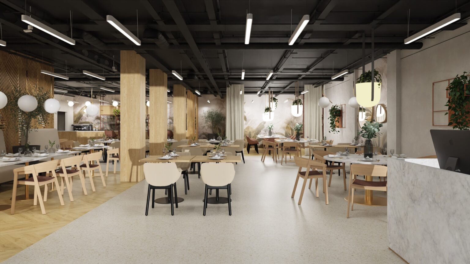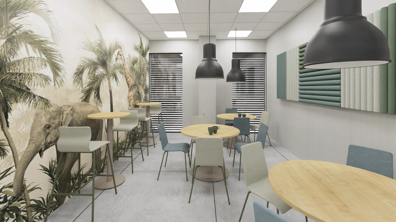 Tworzymy kantyny, które są przyjazne dla oka: barwne detale, dekoracje, odpowiednia roślinność, przemyślane oświetlenie — wszystko, co sprawia, że miejsce przerwy staje się przestrzenią, do której chce się wracać.