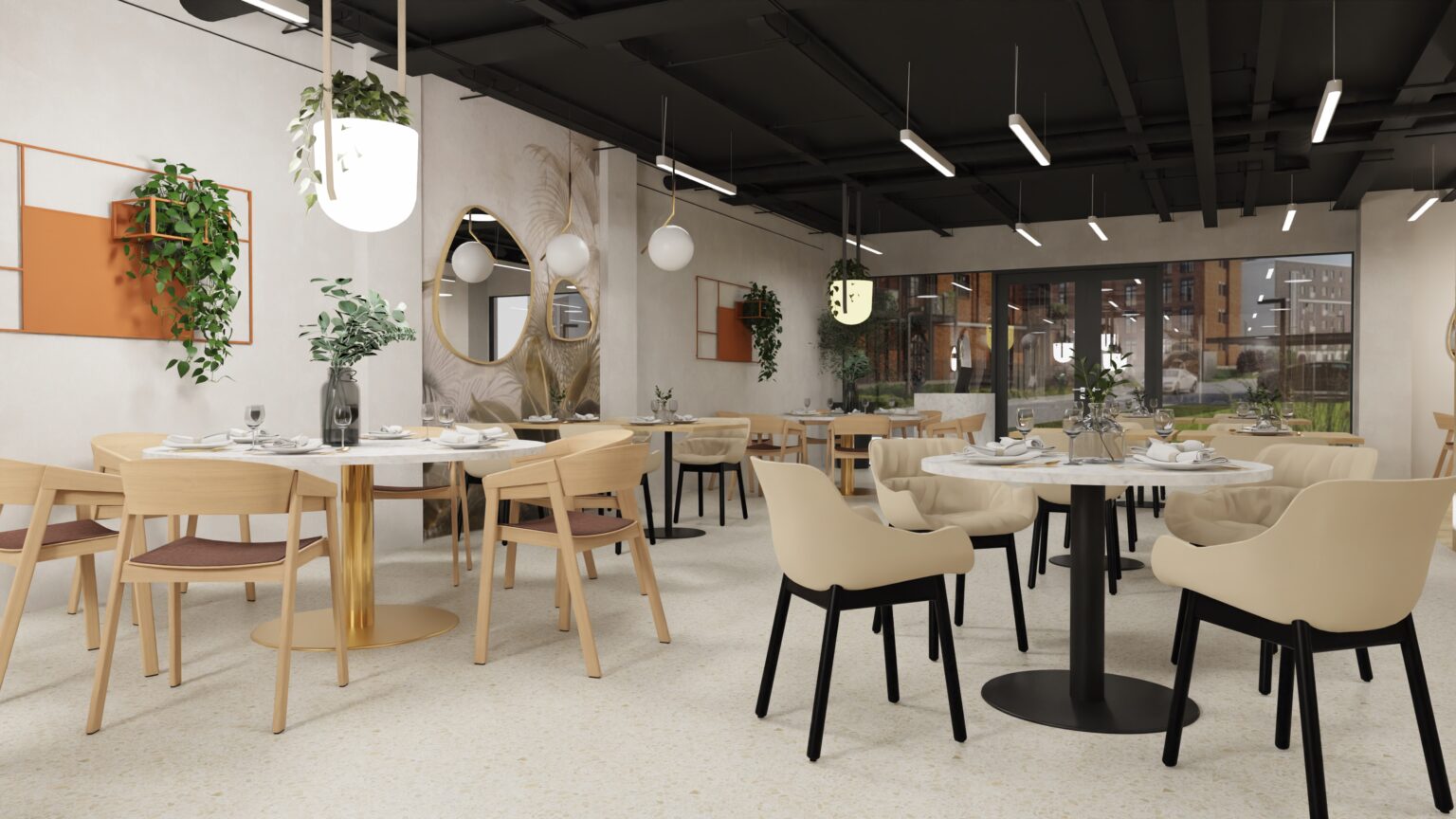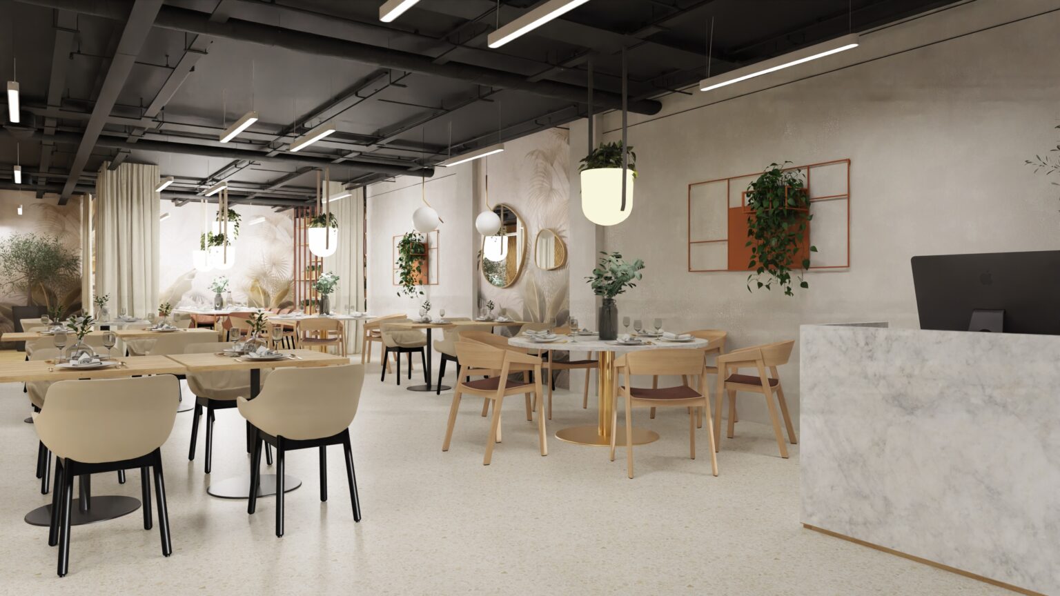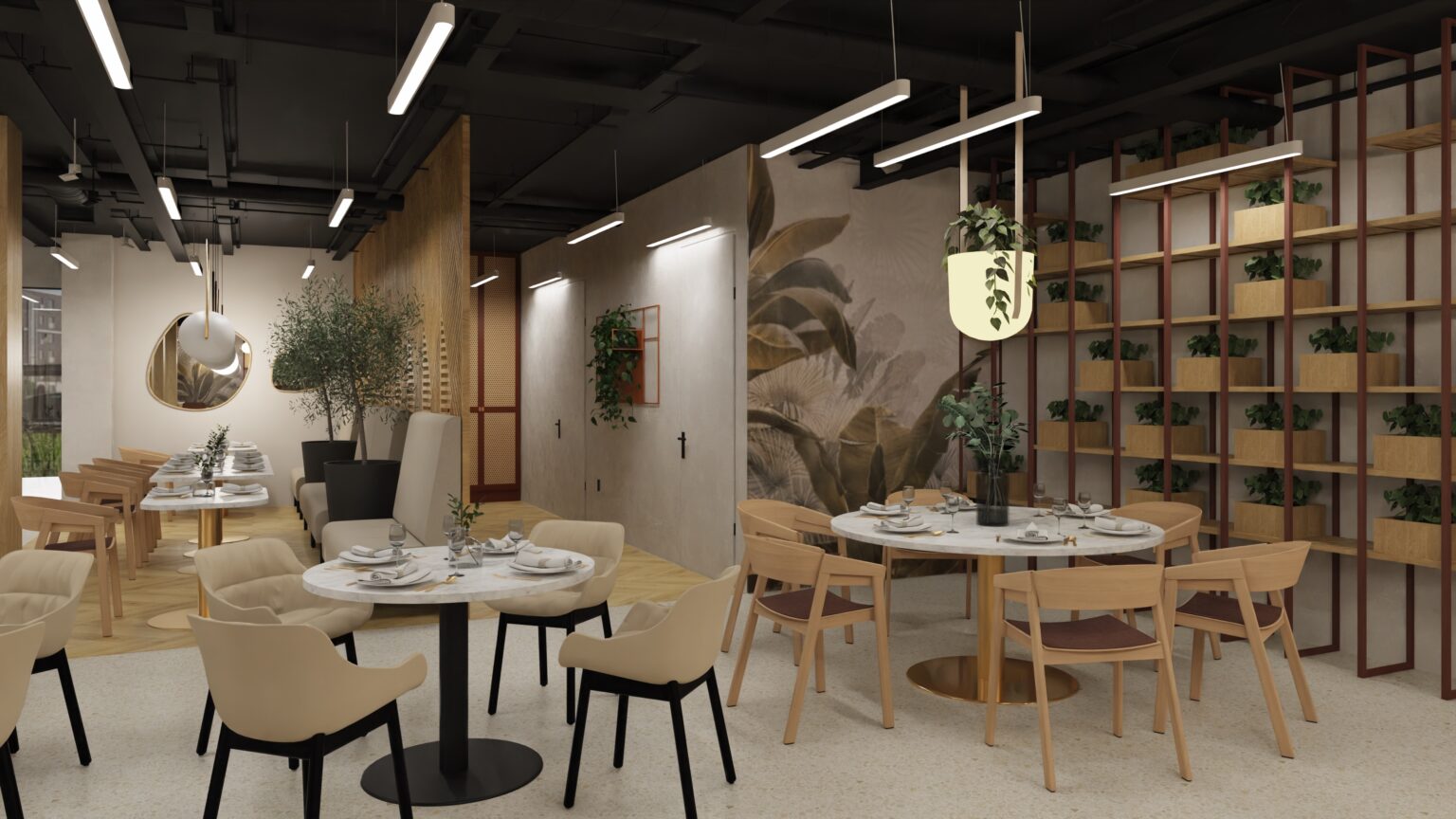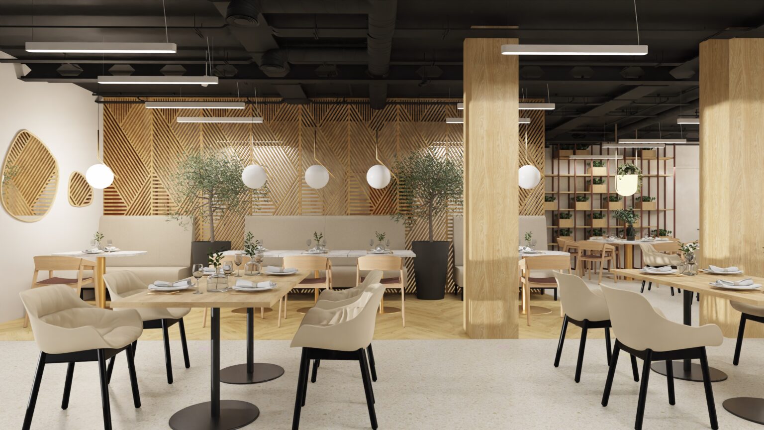 Tworzymy kantyny, które są przyjazne dla oka: barwne detale, dekoracje, odpowiednia roślinność, przemyślane oświetlenie — wszystko, co sprawia, że miejsce przerwy staje się przestrzenią, do której chce się wracać.