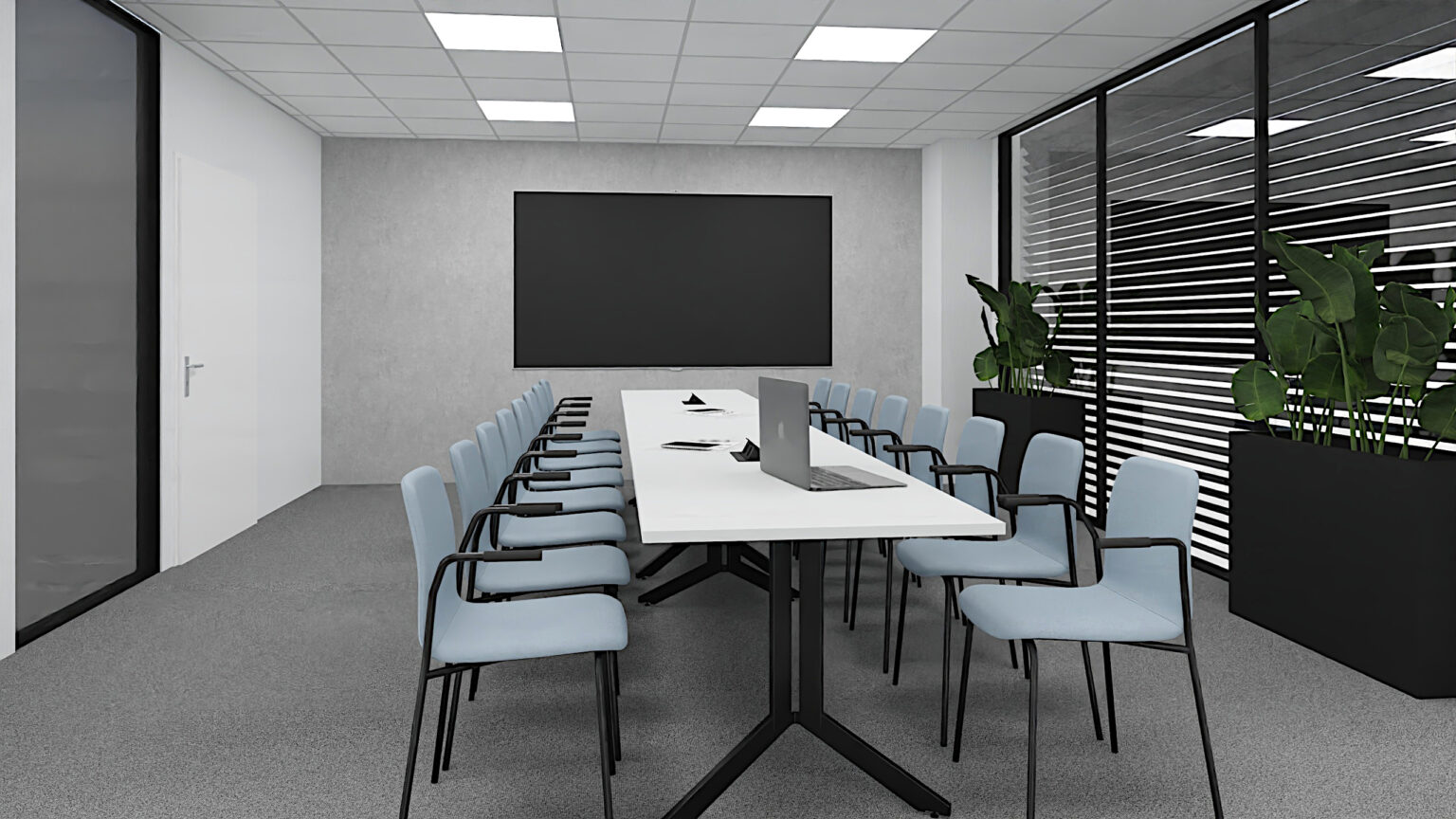 Sale konferencyjne muszą zapewniać klarowną komunikację – zarówno na żywo, jak i online. Dbamy o akustykę i wsparcie techniczne: od różnorodnych mediaportów, przez uchwyty na monitory i ekrany, aż po tablice i oświetlenie.