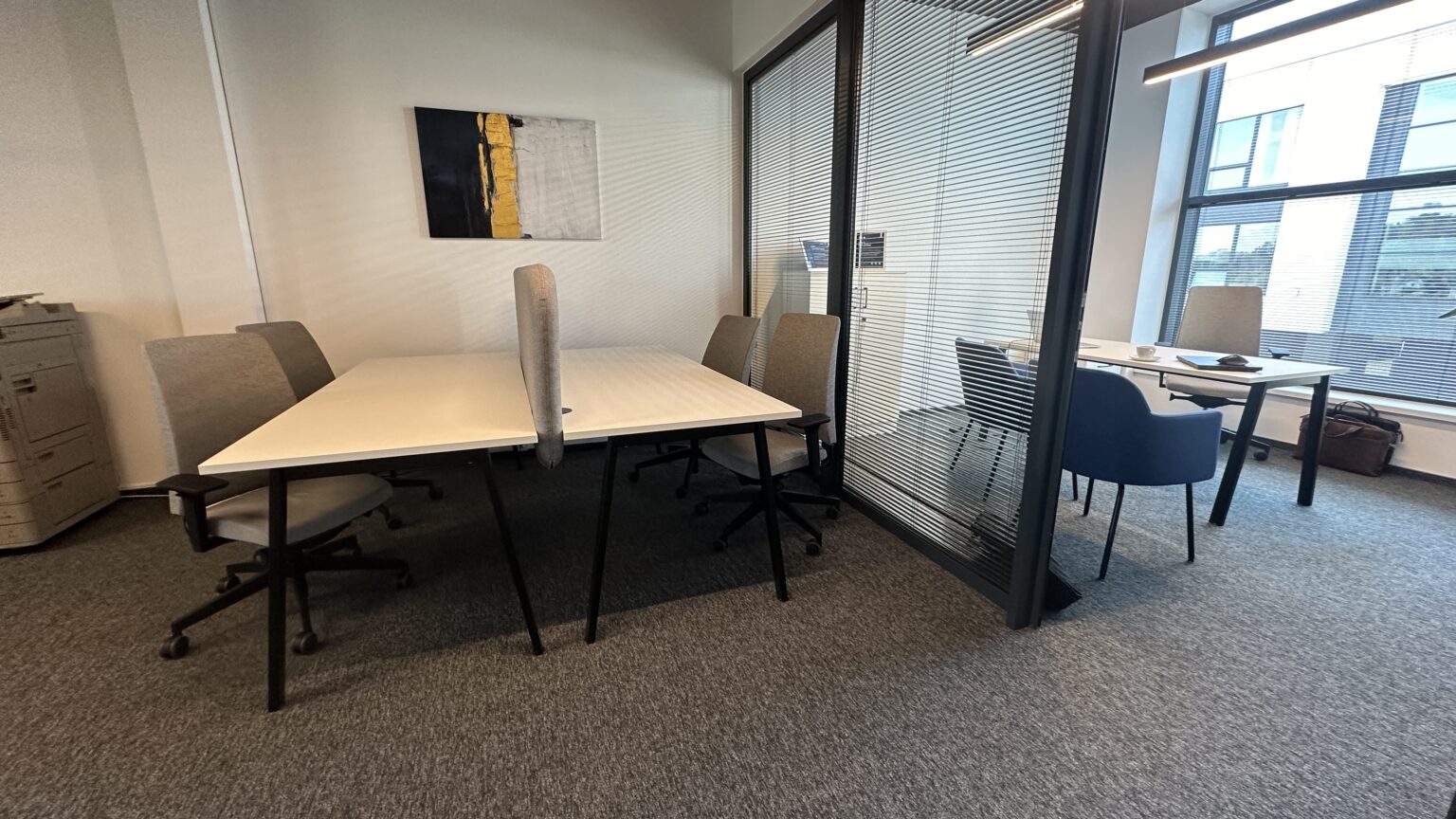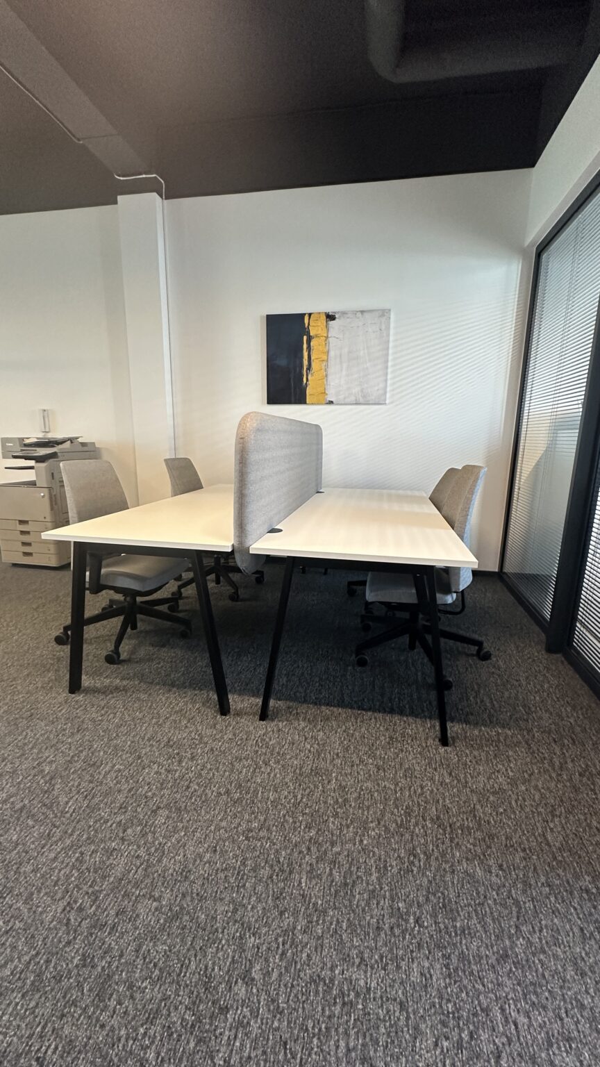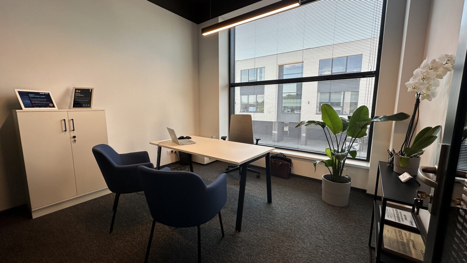 Nowoczesne i funkcjonalne wnętrze biurowe, które łączy profesjonalną estetykę z komfortem pracy. Utrzymana w stonowanych barwach przestrzeń została podzielona na ergonomiczne strefy pracy i minimalistyczną recepcję. Zastosowanie przeszkleń i czarnych detali nadaje wnętrzu elegancji, a naturalne światło i zieleń wprowadzają do niego dynamikę. Projekt łączy estetykę z praktycznością, tworząc idealne miejsce do prowadzenia biznesu.