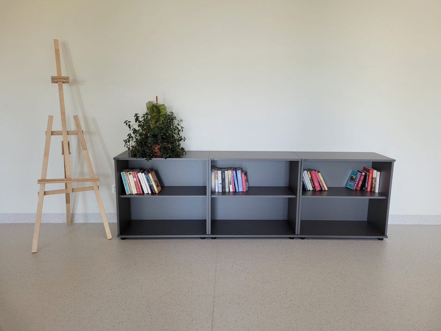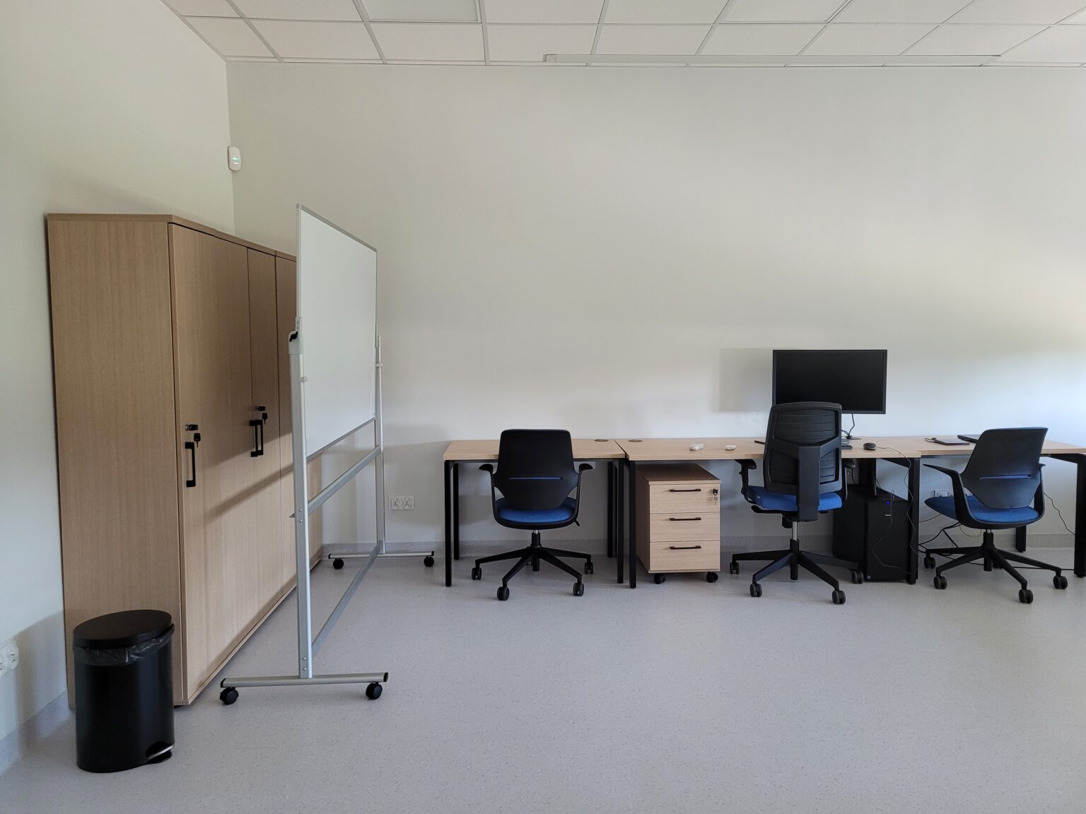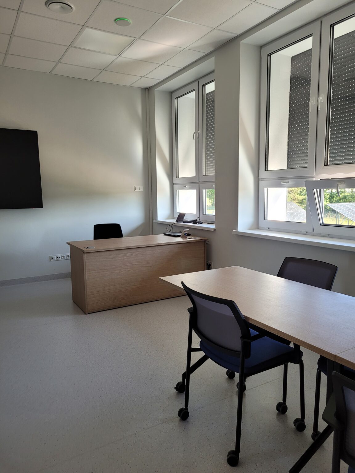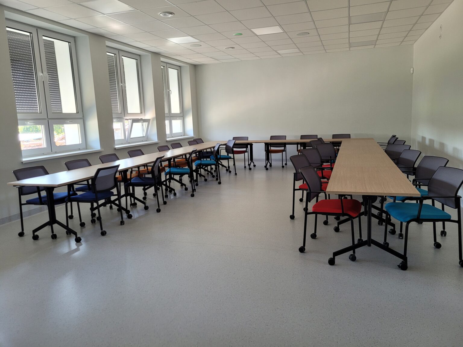 Szkolne wnętrza zostały wyposażone w modułowe, mobilne meble, tak aby można było łatwo je dopasować do różnych potrzeb. W salach lekcyjnych zastosowano wygodne biurka (w tym na kółkach), które można swobodnie przestawiać, tworząc różne układy. Dopełnieniem są ergonomiczne krzesła i fotele. Nie zapomnieliśmy również o przechowywaniu – postawiliśmy na kontenerki podbiurkowe oraz duże, pojemne szafy, w kolorystyce blatów. W strefie wypoczynkowej, zastosowaliśmy modułowe sofy, które wspierają integrację uczniów i pracę w podgrupach oraz pozwalają się zrelaksować między lekcjami. Zadbaliśmy również o wyposażenie uzupełniające: wieszaki, kosze na śmieci, tablice, stoliki boczne czy regały.